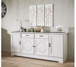 Buffet 4 Portes 2 Tiroirs Camille Imitation Chene Blanchi Gris